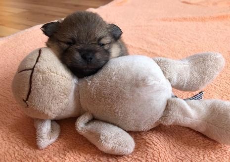 V této souvislosti se musím zmínit, že malá tak dlabala, že měla Majka strach, aby se neprotrhla a při denním převažování se hystericky lekla, jestli je normální, aby zdvojnásobila svoji váhu. Já věděla prdlajs, takže teta Iveta na telefonu nás obě ujistila, že je to v pořádku. Ještě, že teta na telefonu funguje. Malá krásně roste, lítá jako torpédo, takže se u nich doma šoupe nohama. Protože žijí v Ústí nad Labem, mám možnost malou vídat v plné kráse. A že se z ní klube krasavice. A jak celá věc nakonec dopadla? No, jak jinak, než že Amálka zůstane doma, protože nikdo po všech těch zážitcích nemá to srdce dát ji z domu. Tak přirostla k srdci všech, že se s ní nedokáží rozloučit. Pomičí štěňata jsou tak nádherná, že bych se neodloučila ani od jednoho a proto se stále musím opakovat, že my dva s Petrem nikdy chovat nebudeme, protože bychom měli za chvíli doma psinec, a to už by zejména naše okolí nedalo...